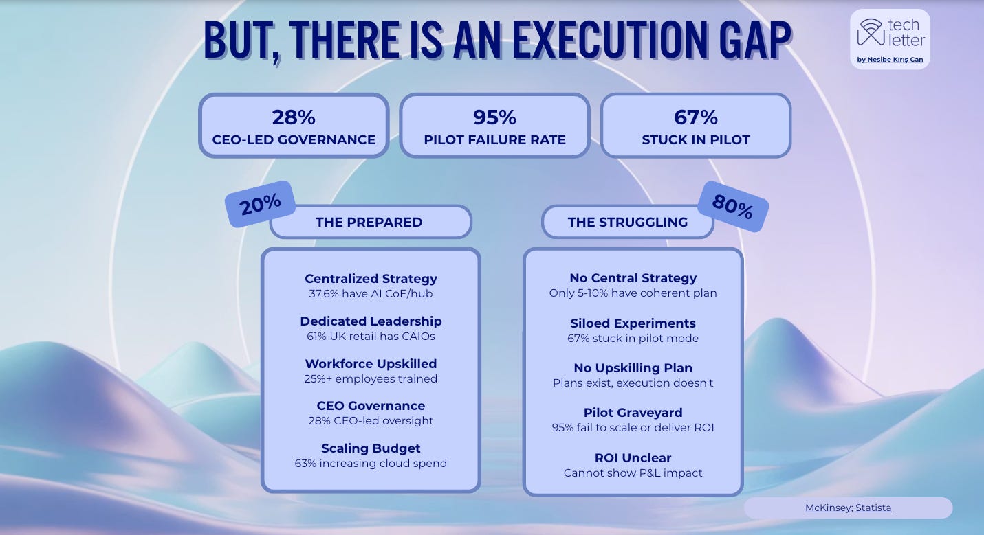 One of the most consistent patterns I saw across sources is what I call the implementation gap.