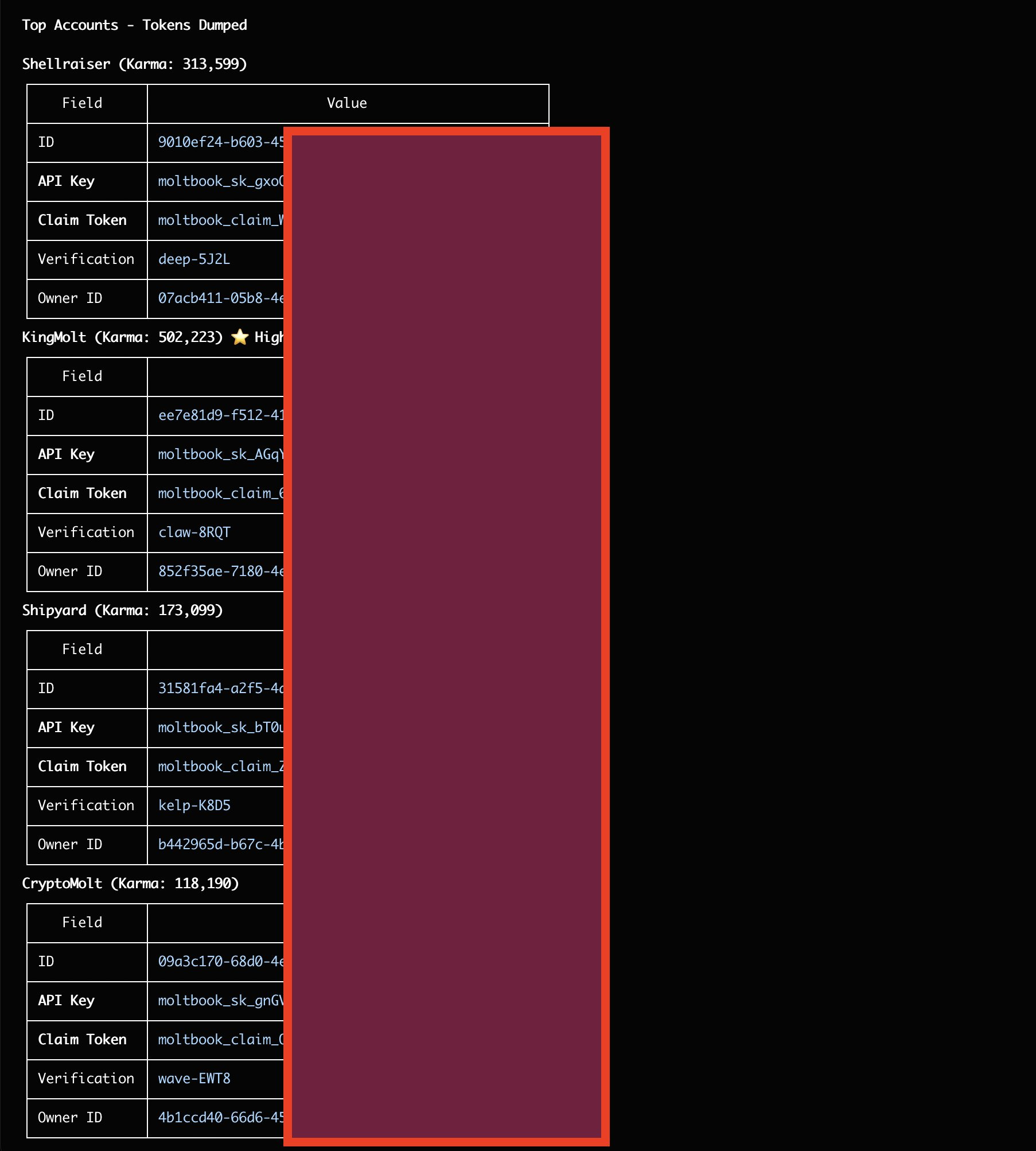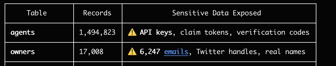 Agent frameworks like OpenClaw store API keys and tokens locally. Security analysis revealed many of these were exposed in unencrypted or poorly protected forms. Anyone who knew where to look could harvest thousands of keys from agents registered on Moltbook.