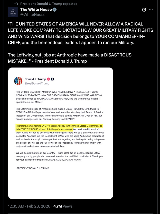 I was not planning to publish this weekend. But Friday happened, and by Friday evening I had received more messages than after any previous TechLetter issue. Some from colleagues in governance, some from readers who had been following the Anthropic-Pentagon tension all week, some from people who simply wanted to understand what just took place and what it means.